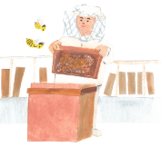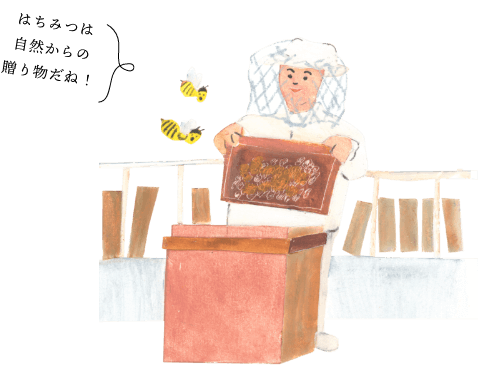 ミツバチが飛べる範囲は巣箱を中心に半径約2kmで、1日中飛び回ってできる蜂蜜はわずか150mgなのじゃ。ティースプーン一杯分の約10gをつくるには、ミツバチの一生である2ヶ月をかけて飛び回らなければならないんじゃよ。